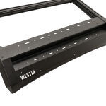 The multi-purpose cargo management system of the Westin Mesa Roof Rack is designed with flexibility in mind. Its 2.5" x 1.5" adjustable crossbars allow you to customize the setup according to the size and shape of your cargo. It features a removable 16-gauge aluminum wind deflector panel and 11-gauge aluminum visor side frames that serves a dual purpose. First, the wind deflector enhances aerodynamics by redirecting airflow, reducing drag, and minimizing wind noise during your travels. Enjoy a quieter and more fuel-efficient journey, all while maintaining a sleek and stylish appearance. Second, removing the wind deflector panel reveals a convenient light mount channel. This innovative design feature allows you to easily install auxiliary lighting to illuminate your path during nighttime adventures or low-light conditions enhancing your visibility and safety.