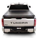 Powered retractable operation allows the cover to open and close quickly at the touch of a button, with an included remote key fob for added control. Built-in anti-pinch safety features and a manual override option ensure confident operation in any situation. Engineered for strength, the cover Supports up to 500 lbs. when evenly distributed, delivering added strength and stability for hauling gear and equipment. A compact roll-up canister measuring 7.5" deep x 11" high preserves valuable bed space while maintaining full coverage, while integrated T-slot channels support accessory mounting for added versatility. For added visibility, an integrated LED canister light illuminates the truck bed at the push of a button. Finished in a black powder-coated aluminum build and backed by a limited lifetime warranty, the Westin Power Retractable Tonneau Cover delivers premium protection, smart functionality, and a precise, vehicle-specific fit you can rely on.