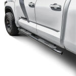 PRO TRAXX 4 Oval Nerf Step Bars with a black powder coat finish are made from e-coated steel and come with a 3 year warranty: