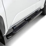 PRO TRAXX 4 Oval Nerf Step Bars with a black powder coat finish are made from e-coated steel and come with a 3 year warranty: