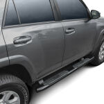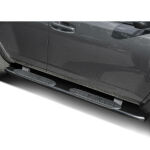 PRO TRAXX 4 Oval Nerf Step Bars with a black powder coat finish are made from e-coated steel and come with a 3 year warranty:
