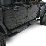 PRO TRAXX 4 Oval Nerf Step Bars with a black powder coat finish are made from e-coated steel and come with a 3 year warranty: