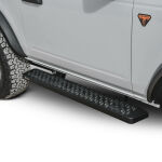 Westins Grate Steps Running Boards are engineered to provide maximum traction without sacrificing style. The 6 1/4in. step surface width features an aggressive 1/4in. high punched tread allowing traction in any weather condition. The unique serrated edges help clean dirt, snow and mud off your boots to keep truck cab clean. Grate Steps Running Boards feature stylishly formed and fully welded ends with a custom die-cast riveted logo badge. E-coated base coat provides long lasting corrosion protection which far surpasses that of the competition. Solid 1-piece construction makes the Grate Steps Running Boards ideal for construction, commercial, vans and utility use. Available in universal lengths (54in., 68in., 75in., 79in., 83in., 86in. and 90in.) with vehicle specific mount kit required, sold separately. Available in textured black finish.