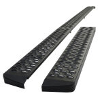 Westins Grate Steps Running Boards are engineered to provide maximum traction without sacrificing style. The 6 1/4in. step surface width features an aggressive 1/4in. high punched tread allowing traction in any weather condition. The unique serrated edges help clean dirt, snow and mud off your boots to keep truck cab clean. Grate Steps Running Boards feature stylishly formed and fully welded ends with a custom die-cast riveted logo badge. E-coated base coat provides long lasting corrosion protection which far surpasses that of the competition. Solid 1-piece construction makes the Grate Steps Running Boards ideal for construction, commercial, vans and utility use. Available in universal lengths (54in., 68in., 75in., 79in., 83in., 86in. and 90in.) with vehicle specific mount kit required, sold separately. Available in textured black finish.