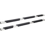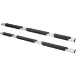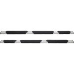 Get a boost, with Westins R5 M-Series Wheel-To-Wheel Nerf Step Bars. The extra wide 5in. footprint step design provides easier and safer vehicle access for both drivers and passengers. Developed and engineered in the USA, the R5 M-Series Wheel-to-Wheel Nerf Step Bars feature three oversized skid resistant step pads allowing easy access to the vehicle cab or truck bed cargo area. Built with high-grade and corrosion resistant steel designed to mount directly to your vehicles existing rocker panels. The modular design saves you money on shipping, as no truck freight costs are required. Also included are injection molded bracket covers for a clean and stylish look. Westins exclusive Isolator Bracket supports the step bar past the truck cab, a feature that competitors do not offer. Without an Isolator Bracket, the step area that extends past the vehicle is left unsupported. Westins unique design provides added bar support without resulting in annoying creaking sounds.