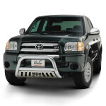 Westin(TM) E-Series Bull Bars are a front-end light bar designed for trucks and larger model SUVs. It is made of 3 diameter polished stainless steel tube. It mounts utilizing existing vehicle mounting points and installation does not require any drilling to the vehicle frame. Comes complete with mounting kit the Westin(TM) E-Series Bull Bar provides a mounting point for 2 auxiliary lights up to 6 in diameter. It features a die-cut Westin(TM) block logo design on the stainless steel skid plate unique to the Westin(TM) E-Series Bull Bar.