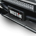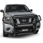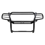 Westins Sportsman X Grille Guard effectively combines aggressive styling with heavy duty front end protection. Engineered to provide both great looks and performance, Sportsman Xs unique design compliments todays larger grille designs, and is available to fit most full and mid size truck applications. Sportsman X has an optional detachable mesh panel (sold separately) which is specifically designed to fit the opening in the center section of Sportsman X Grille Guard, or can be removed to accommodate the flush mounted 26in. dual row LED light bar (sold separately). A smaller removable mesh panel designed for the factory sensor location opening is included as standard with Sportsman X. For specific Chevy and Dodge/RAM applications a Sportsman X Sensor Kit (sold separately) is available. An exterior step plate is located on the 1-5/8in. bottom tube to provide easy access to the engine compartment. Built with heavy duty 2-1/4in. upright rubber strips and 1- 5/8in. outer tubes, Sportsman X Grille Guard is designed to provide protection and style for years to come.