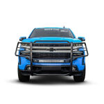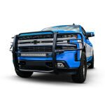 Westins Sportsman X Grille Guard effectively combines aggressive styling with heavy duty front end protection. Engineered to provide both great looks and performance, Sportsman Xs unique design compliments todays larger grille designs, and is available to fit most full and mid size truck applications. Sportsman X has an optional detachable mesh panel (sold separately) which is specifically designed to fit the opening in the center section of Sportsman X Grille Guard, or can be removed to accommodate the flush mounted 26in. dual row LED light bar (sold separately). A smaller removable mesh panel designed for the factory sensor location opening is included as standard with Sportsman X. For specific Chevy and Dodge/RAM applications a Sportsman X Sensor Kit (sold separately) is available. An exterior step plate is located on the 1-5/8in. bottom tube to provide easy access to the engine compartment. Built with heavy duty 2-1/4in. upright rubber strips and 1- 5/8in. outer tubes, Sportsman X Grille Guard is designed to provide protection and style for years to come.
