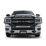 Westins Sportsman X Grille Guard effectively combines aggressive styling with heavy duty front end protection. Engineered to provide both great looks and performance, Sportsman Xs unique design compliments todays larger grille designs, and is available to fit most full and mid size truck applications. Sportsman X has an optional detachable mesh panel (sold separately) which is specifically designed to fit the opening in the center section of Sportsman X Grille Guard, or can be removed to accommodate the flush mounted 26in. dual row LED light bar (sold separately). A smaller removable mesh panel designed for the factory sensor location opening is included as standard with Sportsman X. For specific Chevy and Dodge/RAM applications a Sportsman X Sensor Kit (sold separately) is available. An exterior step plate is located on the 1-5/8in. bottom tube to provide easy access to the engine compartment. Built with heavy duty 2-1/4in. upright rubber strips and 1- 5/8in. outer tubes, Sportsman X Grille Guard is designed to provide protection and style for years to come.