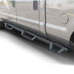 Westins HDX Drop Wheel-to-Wheel Nerf Step Bars feature a notched bar design with a 3rd step location for easy bed access. They provide strong traction with over 2 inches more of toe/heel step area than our Westin's HDX Drop W2W Nerf Step Bars include an added 3rd step location for easier bed area and cargo access. HDX also boasts more than 2 inches of added toe/heel step area which far exceeds all other competitive brands. HDX's notched bar design construction results in a reliable long lasting Bar, with a solid fit and a rugged look. The added length of HDX Drop Wheel-to-wheel Nerf Step Bars provides users with better cab access and better footing and traction for both drivers and passengers. Product includes mount kit and is offered in a variety of vehicle specific applications. Bolt-on installation so no drilling required. Mount kit included. Westin's exclusive Isolator Bracket supports the step bar past the truck cab, a feature that competitors do not offer. Without an Isolator Bracket, the step area that extends past the vehicle is left unsupported. Our unique design provides extra bed support without resulting in annoying creaking sounds.