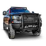 The HDX Grille Guard is the ultimate in extreme truck gear. Its a fully welded 1-piece grille guard that features full wraparound wings made of heavy duty 2in. diameter tube. Uprights are finished and protected with extra wide rubber that is 1/8in. thick and 2 3/4in. wide resulting in a solid clean look. The full punch plate grille protects the vehicles grille area. HDX Grille Guards are available in stainless and black powder coat finish.
