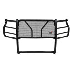 The HDX Grille Guard with a black powder coat finish is made from e-coated steel and comes with a 3 year warranty: