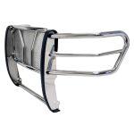 The HDX Grille Guard is the ultimate in extreme truck gear. It’s a fully welded 1-piece grille guard that features full wraparound wings made of heavy duty 2 in. diameter tube. Uprights are finished and protected with extra wide rubber strip that is 1/8 in. thick and 2 3/4 in. wide resulting in a solid clean look. The full punch plate grille protects the vehicle's grille area. HDX Grille Guards are available in stainless and black powder coat finish.