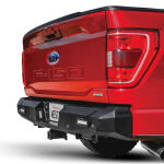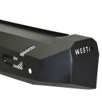 "High and Tight" best describes the great looking new Pro-Series Rear Bumpers from Westin. This all new "off road style" rear bumper features a light weight, slim, one-piece design, adding a modern, aggressive look to your truck. Built to improve ground clearance and departure angles when driving in more rugged terrain. The Pro-Series Rear Bumper is fully compatible for OEM parking sensors, hitch, and blind spot monitors. It also includes two LED license plate lights and can accommodate LED back up lights (sold separately). Featuring a textured black finish with an e-coated base coat, providing long lasting corrosion protection from the elements with easy bolt-on installation. Just add the original Pro-Mod Front Bumper, and your transformation from stock to custom is complete.