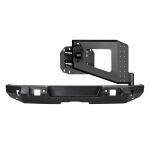 Westin's WJ2 Rear Bumper with Tire Carrier with Sensors is constructed with 3/16-inch plate steel with an 8 gauge tire carrier. The tire carrier is designed to work with or without factory or Westin hitches, and opens and closes with the tailgate. Tapered roller bearings and 2 turnbuckle heim links improve carrier rigidity while its bolt-on spindle allows adjustment of the carrier separate from the bumper. Features integrated recovery shackle mount points as well as additional mount points for Auxiliary Lights and Rock Lights. Includes 2 off-road jack points, a bottom frame mount that prevents the bumper from rotating and provisions for back-up sensors. Product includes bumper, mounting hardware and install instructions.