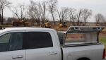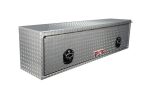 Designed for flat/stake beds extra deep and tall. Reinforced top shelf to carry the load. Heavy duty gas shocks on flip up door. Has a bottom compartment with drop down door. Made of .063 thick aluminum diamond tread. Secure stainless folding locking T handles. Weather resistant rain gutter design with a full rubber seal.